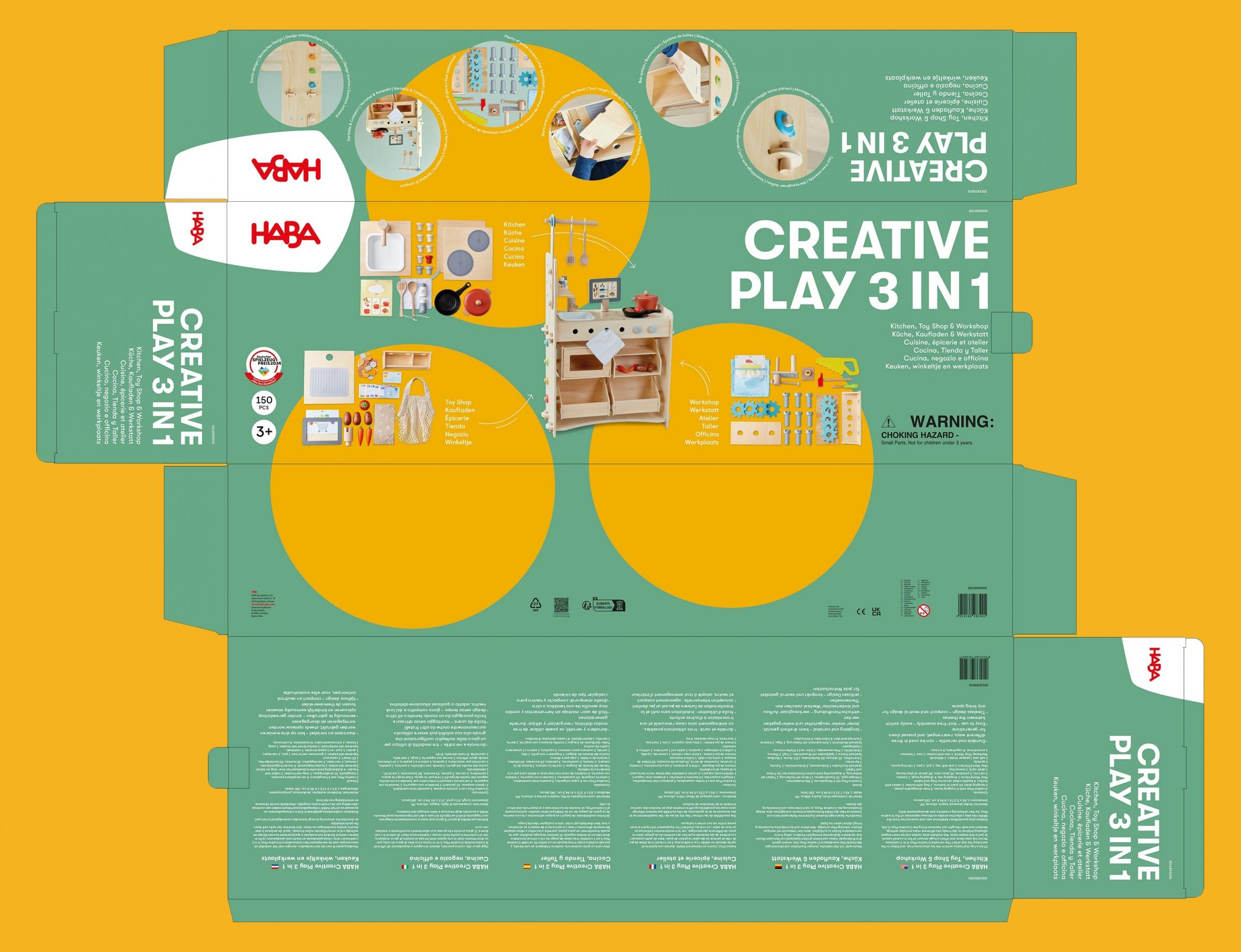 ← HABA’s Creative Play 3in1 is a pretend kitchen, workshop and store.