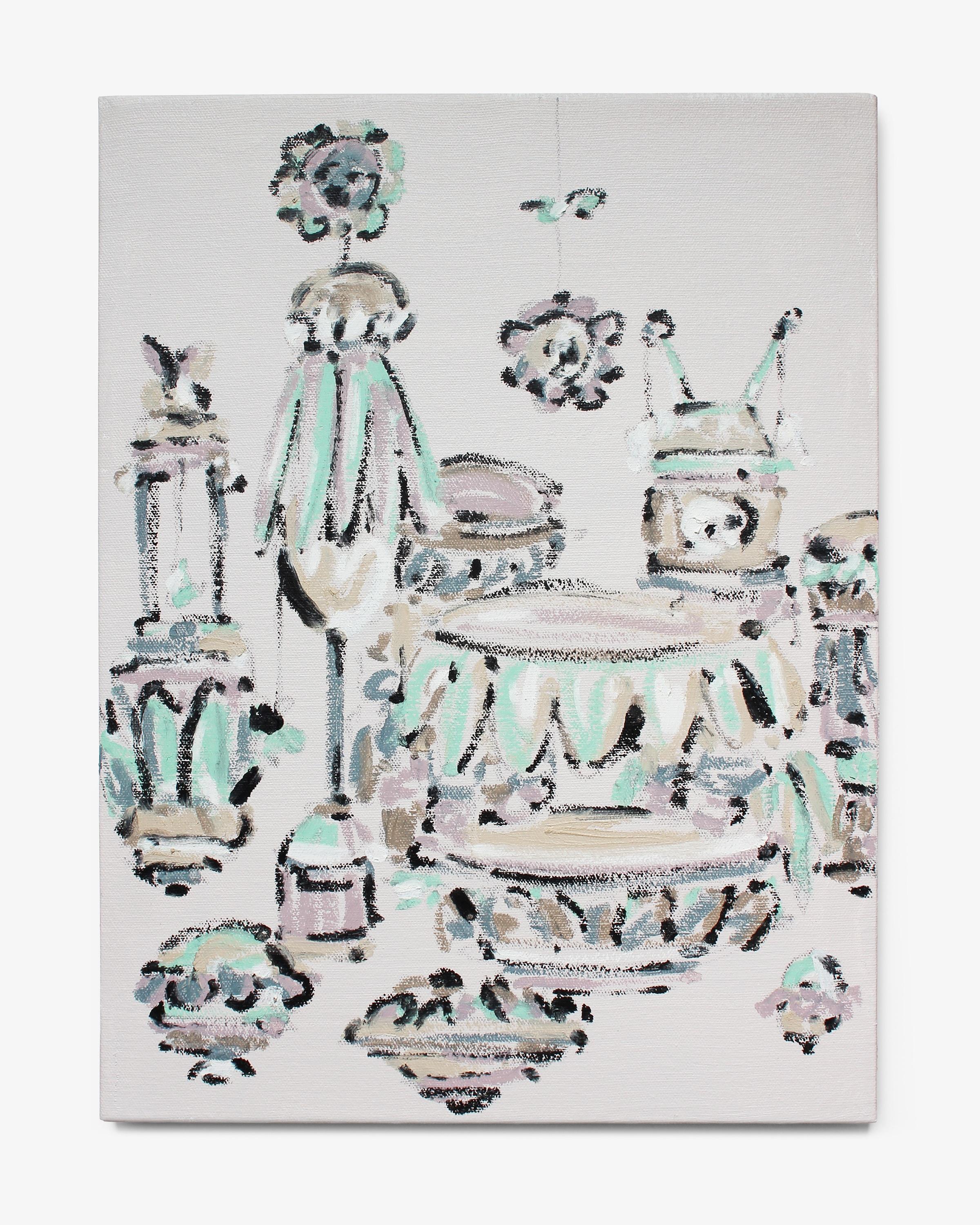 Series of paintings that draw from all kinds of objects that could be displayed in a vast cabinet of curiosities.