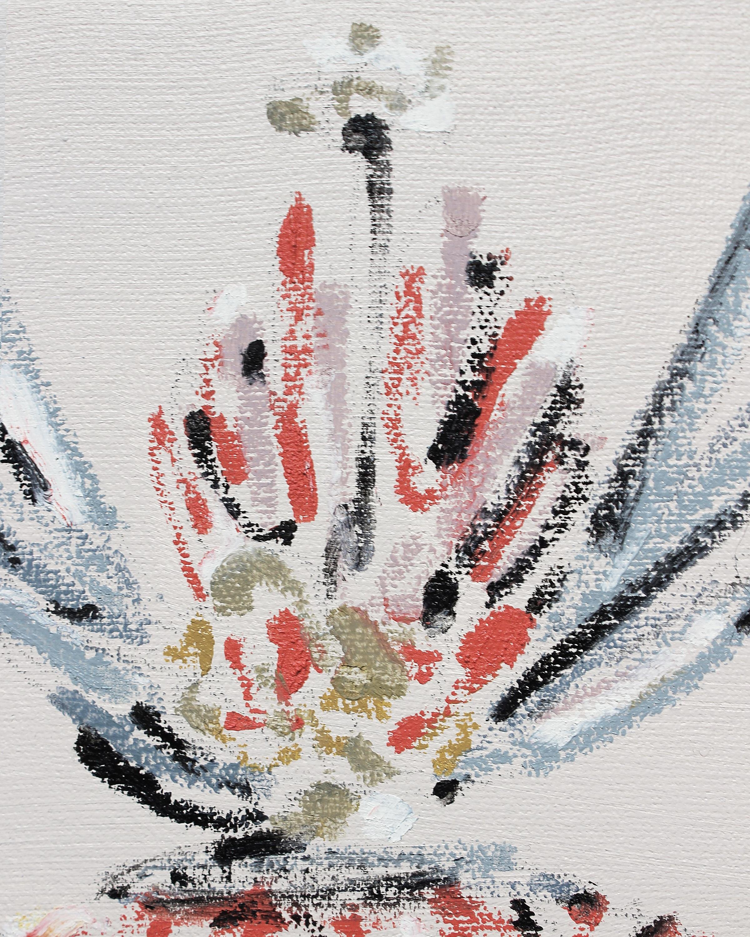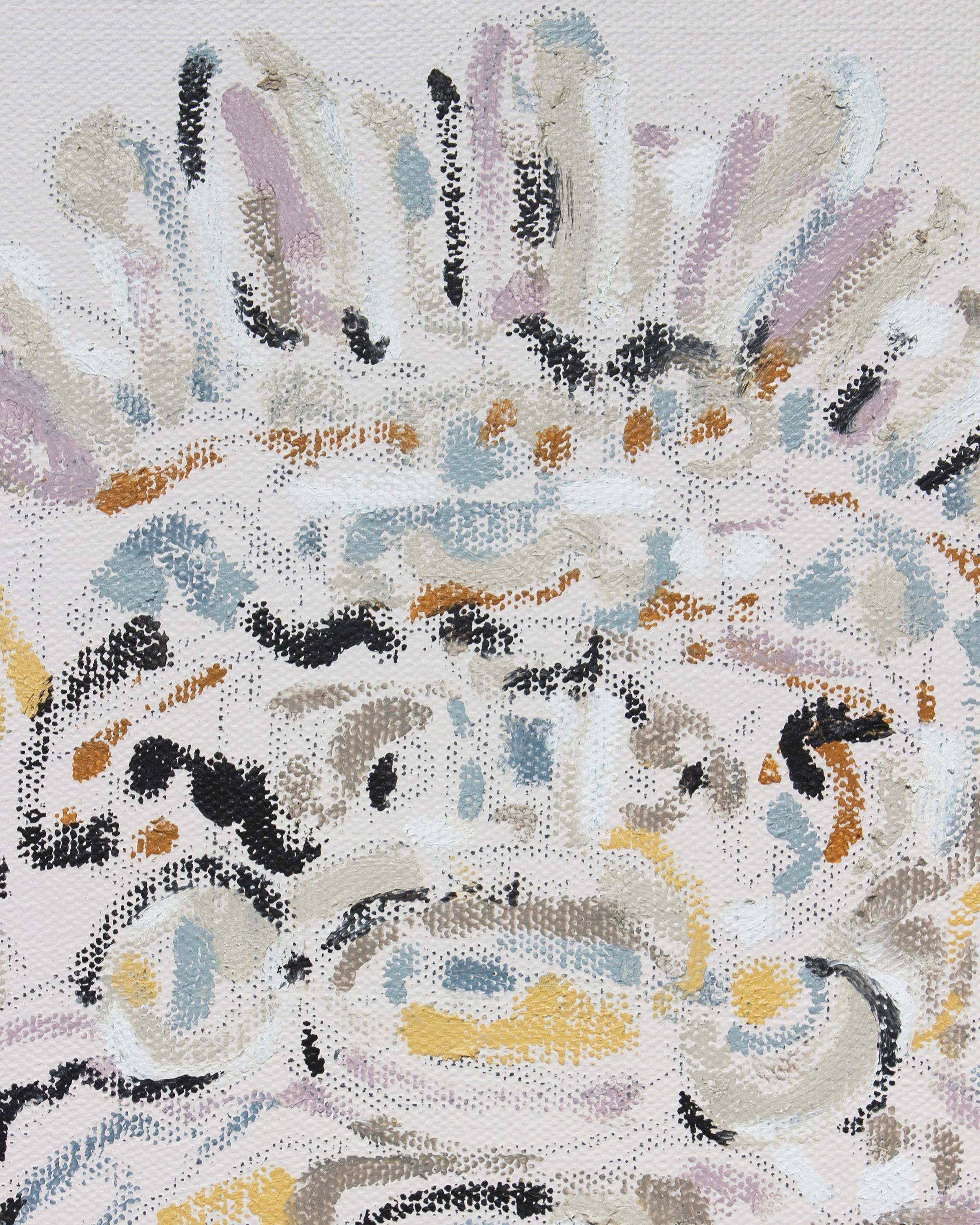 Above and detail on the right: “Stehaufmännchen” oil, acrylic and graphite on canvas, 9 x 12 inches →